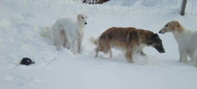 Snön har smält väldigt mycket nu och i går morse så rasade det ner enorma massor från några av våra ekonomibyggnader bla verkstadsbyggnaden som vi har bilen i. Det föll ner ca 1 meter hög och 2 meter bred snövall och Christian fick använda traktorn för att skopa bort det. Tur att det hände i går eftersom det tog väldigt lång tid att få bort all snö, hade det hänt i morse hade vi inte kommit ut med bilen. Det var väldigt halt ute i går och det var svårt att promenera med hundarna, när Tommy kom och plogade i hundrastgårdarna så var det betydligt lättare och roligare att vara ute, både för hundarna och oss. Hundarna satt i kökssoffan och tittade på när han plogade, de har nu lärt sig att det är klart när han åker ifrån fältet och då ville de genast gå ut och springa.