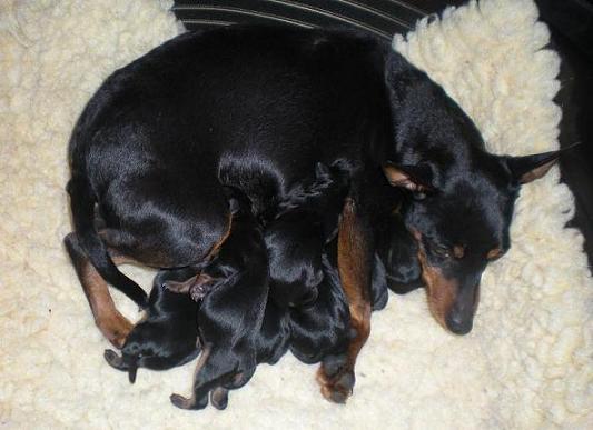 Brizby är själv i en kull på sju valpar men hennes mamma är mycket större. Jag kunde aldrig tro att lilla Brizby kunde få så många valpar.