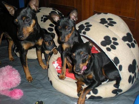 På kvällarna får alla valparna vara med oss i vardagsrummet och mysa i soffan med de andra småhundarna.