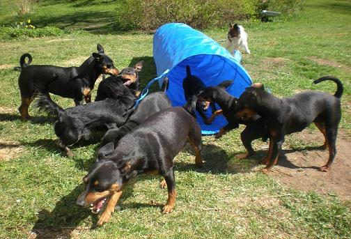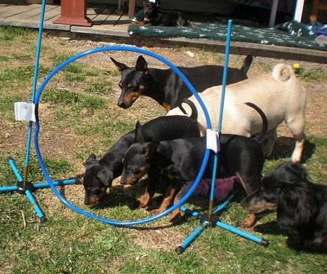 Igår fick småhundarna och Amies valpar prova på lite agillity på tomten. De tyckte det var så roligt, tunneln var allra bäst den kunde man springa och jaga varandra i.