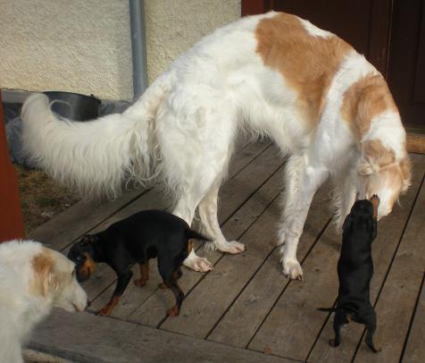 Doris och en av valparna och Atti som hälsar på Deya