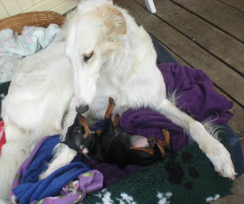 Gina och en av valparna och Tosca