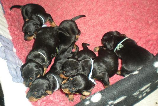 Idag är valparna 1 vecka. De har blivit riktigt runda om magen och väger nu. Hanarna, 234 gram, 212 gram, 229 gram och 263 gram. Tikarna, 248 gram, 242 gram och 207 gram. Fler bilder i valpgalleriet.
