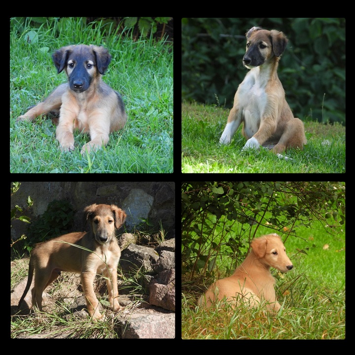 idag är valparna 8 veckor och de är riktigt busiga, modiga och äventyrliga, de utforskar nu hela tomten och leker så mycket med de små hundarna. De har alla en underbar personlighet och är så gulliga. Ett bildcollage på dem med deras namn. Fler bilder kommer i deras bildgalleri.