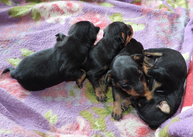 Mini har fått sina valpar de föddes den 9 februari och det blev 2 hanar och 2 tikar. Vi vägde dem senare under natten och deras vikt var då hanarna: 150 gram och 130 gram och tikarnas: 140 gram och 130 gram. De är nu en vecka gamla och de har nu blivit lite mer aktiva och de går upp bra i vikt. Deras vikt nu är hanarna: 225 gram och 179 gram tikarna: båda två väger 172 gram.