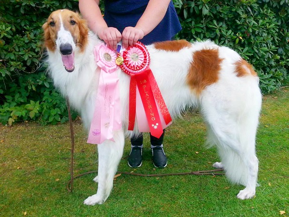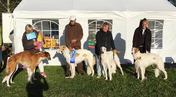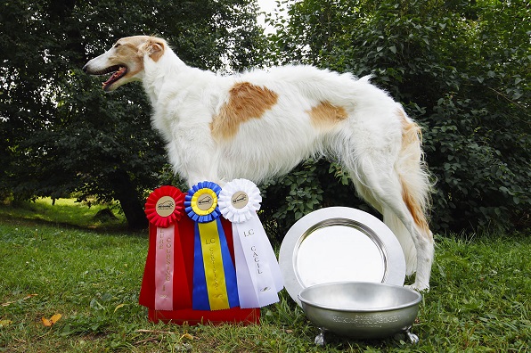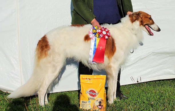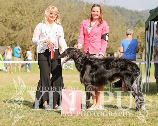 Nu blev det riktigt nervöst att vänta på prisutdelningen och när den började så fick vi veta att det skulle dela ut ett best in field pris. Det var flera raser som kom före borzoierna och man lyssnade på deras poäng, tillslut blev det borzoiernas tur och vi var väldigt nervösa men Keira fixade det hon blev 1:a med CERT och CACIL.