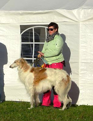 Historien om Doris är så speciell, vi träffade henne för första gången på Älvsjö mässans utställning i april 2008, hon var då 7 månader gammal. Vi hade bestämt att vi skulle skaffa en borzoi när vi flyttade ner till vår gård senare samma år, vi blev båda så otroligt förälskade i lilla Doris. Vi pratade med hennes uppfödare, Sussie, om hon skulle ha några valpar framöver och det skulle hon ha, vi åkte över och hälsade på henne i juni och då frågade vi givetvis om vi kunde få köpa Doris men det fick vi tyvärr inte, det slutade med att vi inte bara hade bokat en valp utan två från hennes kommande kull. Vi flyttade ner till gården i juli och senare samma månad så ringde Sussie och frågade om vi fortfarande ville köpa Doris och givetvis ville vi det, så den 1 augusti mötte vi Sussie och Doris I Norrköping och äntligen så fick vi träffa henne igen och den här gången skulle hon flytta hem till oss och bli vår underbara tjej. Hon fann sig tillrätta väldigt fort och våra 4 småhundar Tigge, Attti, Amie och Brizby och senare samma år även Tosca fullständigt avgudade henne, de blev bästa vänner och de hade så roligt ihop. Sedan 2009 kom vår andra borzoi och Doris blev överlycklig att ha fått gulliga Gina som kompis de fann varandra direkt och har alltid stått varandra så otroligt nära. Med Doris började vi med lure coursing och det är absolut den roligaste hundsporten som finns, vi har så fina minnen från alla prov med henne och höjdpunkten var 2010 då hon blev årets lure coursing hund. Hon har gett oss två fantastiska valpkullar med sammanlagt 10 valpar, 4 underbara flickor finns kvar hos oss och det är vi så otroligt glada för, genom dem kommer hon att leva vidare. Hon var en otroligt bra ledarhund, hon var verkligen drottningen här hemma, hon hade ett så underbart och mjukt sätt och var en fantastisk mamma och vän, alla hundarna såg verkligen upp till henne.