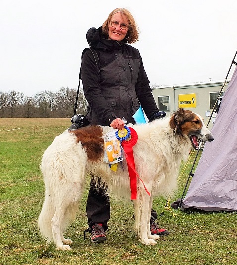 Den 10 april var det dags för årets första LC-prov, vi kunde tyvärr inte komma men på plats var Therese med Erebos "Bozze", Leena och Jonny med Hugin "Hugo" och Kerstin med Herakles "Herkules". Det var en mycket spännande första lopp och Hugo och Bozze låg 1:a och 2:a, Herkules låg 7:a. I andra loppet sprang Hugo och Bozze ihop, det blev ett fantastiskt lopp mellan dem. Det var riktigt nervöst att vänta här hemma på resultatet, till slut kom det och Hugo blev på sitt första lc prov 1:a med Cert, Bozze blev 3:a och Herkules slutade som 8:a. Stort grattis Leena, Jonny, Therese och Kestin. Alla hundarna plockade poäng till både EM listan och borzoi-ringens årets hund lista. Foto Camilla Colleén.