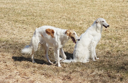 Vi var och parade Gina med Tichvin's Caezarov den 20 mars. Så nu hoppas vi att vi får fina, duktiga och färgglada valpar den 22 maj. Mer information på sidan väntade valpar och här är en Länk till stamtavla på borzoi files.
